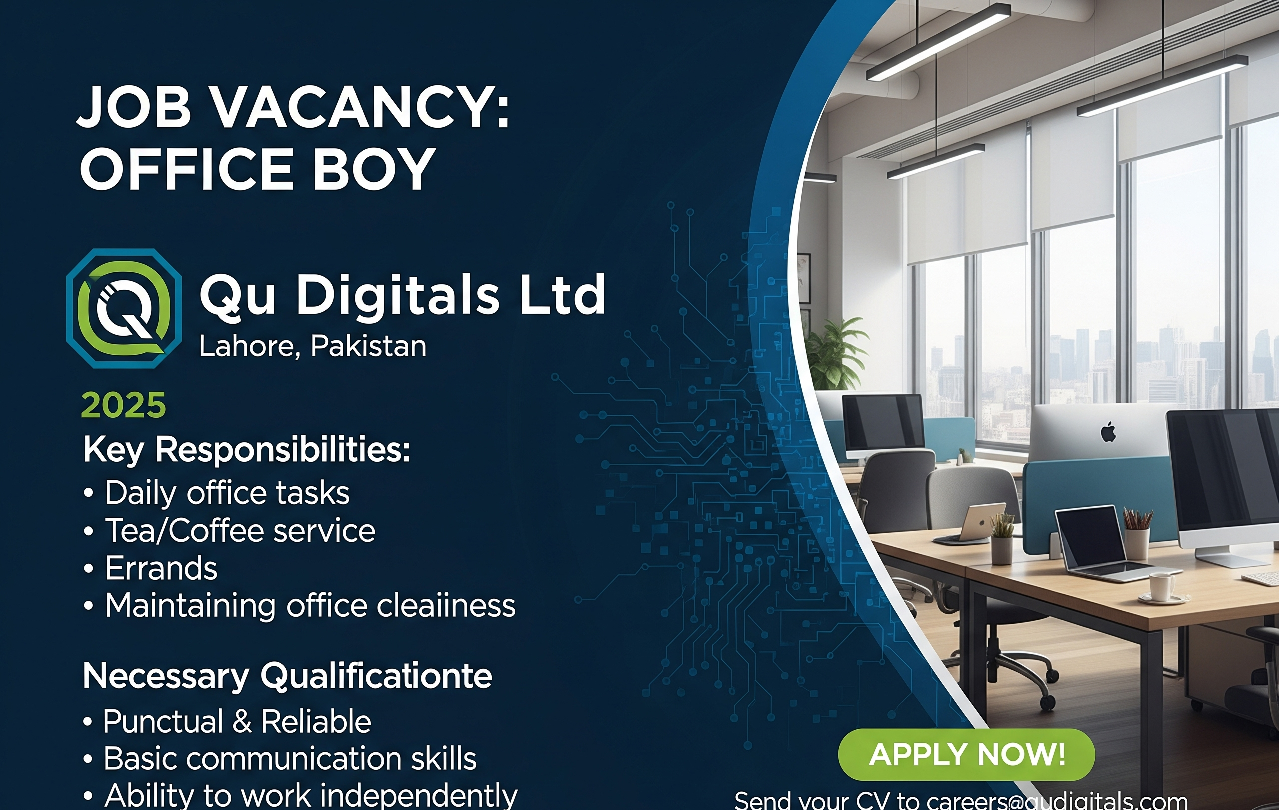 How to Apply for Office Boy Job in Lahore at Qu Digitals